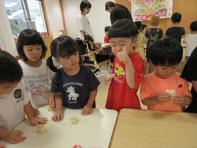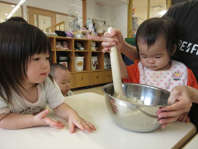 もち米をつぶし丸めて食べると「おいしー!」と満面の笑みでした!