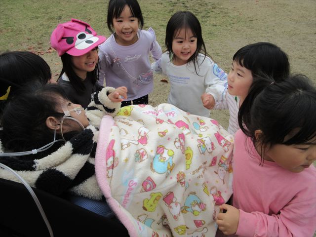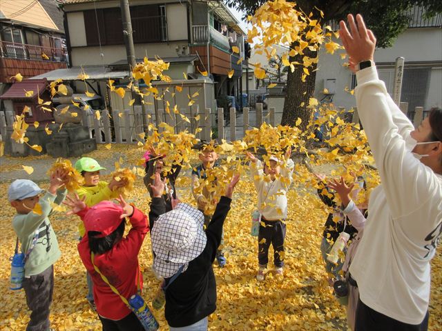 みんなで散歩に出かけ、簡単な集団遊びをしました。だるまさんがころんだやはないちもんめ、むっくりくまさんなど楽しかったようでブームの子どもたちでした。