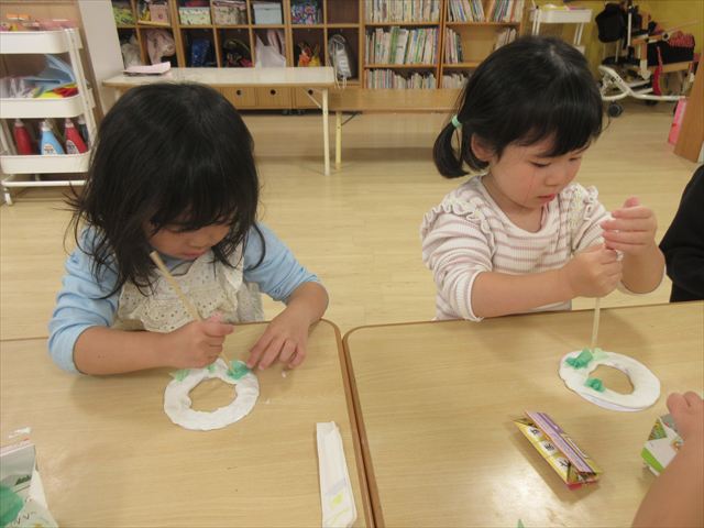 誕生児をお祝いした後に各クラスでクリスマスの製作をしました。個性豊かな作品が出来上がりました。