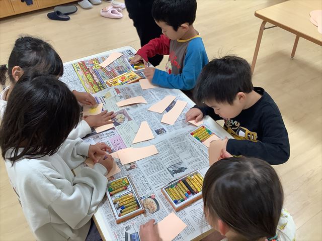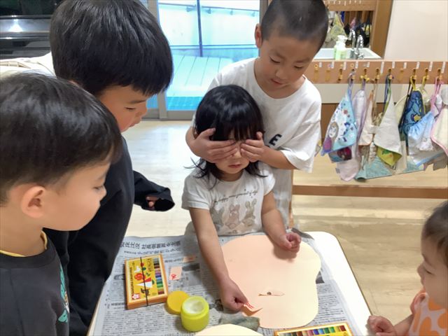 自分たちで顔のパーツを作り、福笑いを楽しみました。
